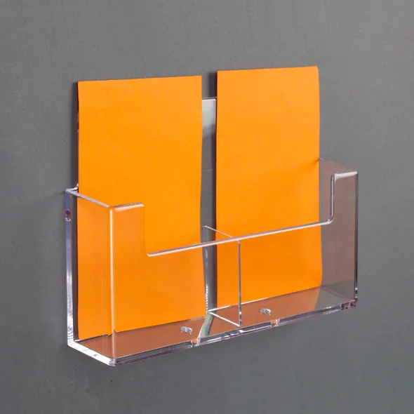 Upgrade your promotional material presentation with our Dual Pocket A6 Portrait Wall-Mount Leaflet Holder featuring side-by-side pockets. Shop now to enhance your wall-mounted literature display and leave a lasting impression on your audience.
