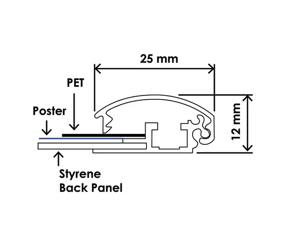 Silver anodised aluminium 25mm mitred frame for wall mounting posters. Supplied with a PVC UV anti glare cover, wall fixing and screws ready for wall mounting. Upgrade your poster displays with our premium snap frames, designed to make your life easier while enhancing the presentation of your materials. Whether you're showcasing posters, artwork, menus, announcements, or important documents, the snap frames are the perfect choice.Key Features: