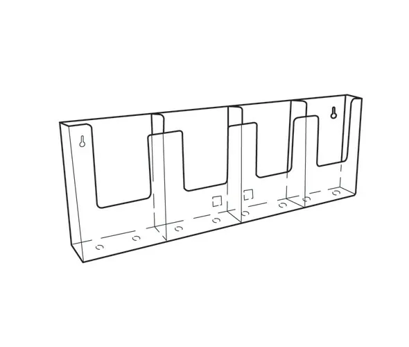 Our Quad Pocket 1/3 A4 (DL) Wall-Mount Leaflet Holder, meticulously fashioned from robust styrene for enduring performance. This sophisticated leaflet holder showcases a side-by-side quadruple pocket design, offering a sleek and space-efficient solution for storing your 1/3 A4 (DL) sized brochures, leaflets, or cards when mounted on your walls. Whether you're a business, medical centre, or educational institution, this adaptable wall-mounted leaflet holder ensures your promotional materials are well-organized and easily accessible. Key Features: