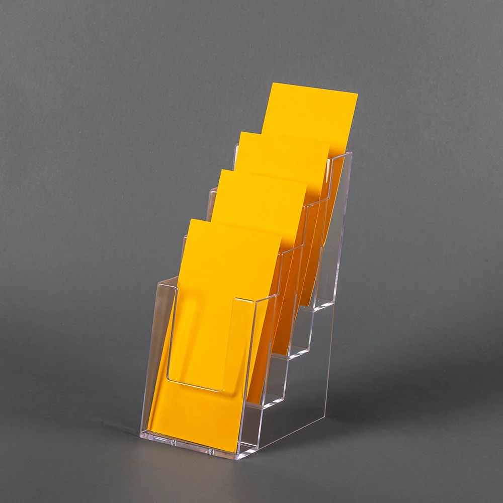 2. Four-Pocket Design: With four pockets, this tiered leaflet holder offers a simple way to organize and display multiple leaflets simultaneously. It's ideal for displaying different brochures, pamphlets, or promotional materials together.
