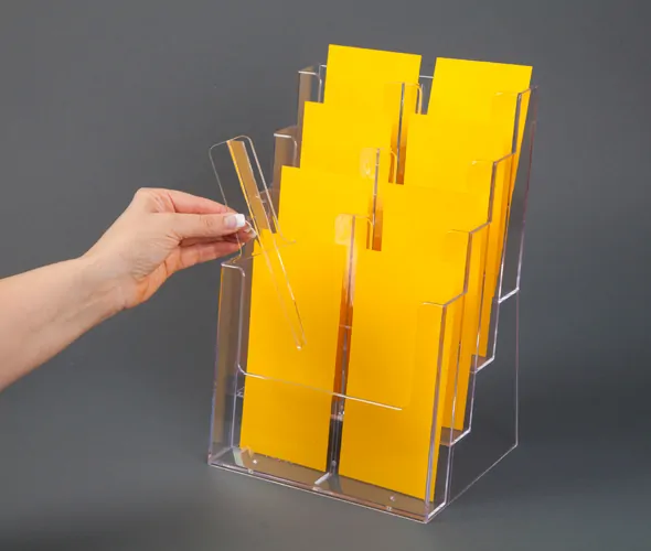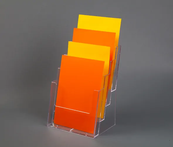 - Tiered Pocket Design: Featuring four pockets, this tiered brochure holder provides an ideal way to organize and present multiple A4 portrait brochures together. It's a great choice for showcasing leaflets, pamphlets, and promotional materials simultaneously.