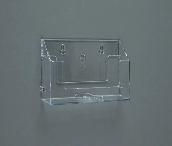 Clear high strength (high molecular weight) styrene, A6 landscape leaflet dispenser with holes for mounting directly to display material or wall. Enhance your promotional materials with our A6 Landscape Clear Styrene Wall-Mounted Leaflet Holder. Expertly designed for easy wall installation, this holder provides an elegant and organised solution for displaying postcards, leaflets, and marketing materials. The two keyhole slots in the back make mounting a breeze. Key Features:- A6 Landscape Size: Tailored to perfectly accommodate A6 landscape-sized materials, this holder is ideal for showcasing postcards, leaflets, and promotional content in a professional and organized manner.
