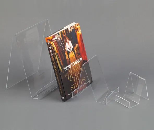 Clear acrylic freestanding angled book standElevate your book display with our Clear Acrylic Freestanding Angled Book Stand, a stylish and versatile solution for showcasing your literary treasures. Manufactured from high-quality, transparent acrylic, this stand effortlessly combines form and function.