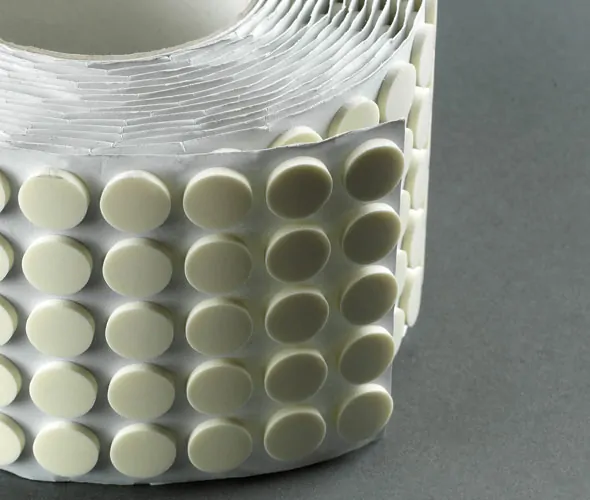 White self adhesive foam disc. Suitable for easy and low cost mounting of CD disks to card. Available in off-white or colours subject to quantity.