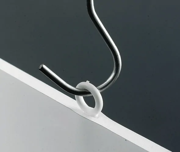 White polypropylene spike. Pierce into fibre ceiling tile and turn to grip. also fits foam core and Correx type boards- 38mm long