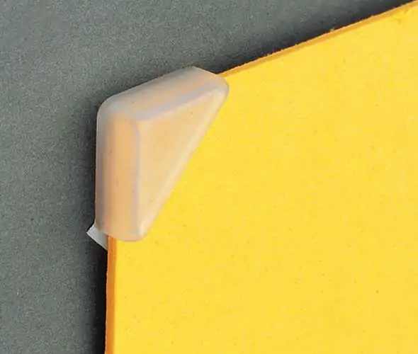 Natural polypropylene corner mount with self adhesive fingertab for fast and efficient application. Holds material up to 3mm thick. 12mm x 12mm corner