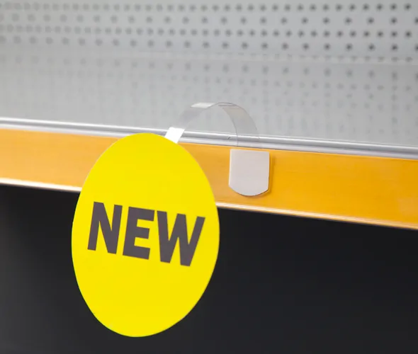 Clear RPET (Recycled PET) wobbler with two self adhesive foam pads