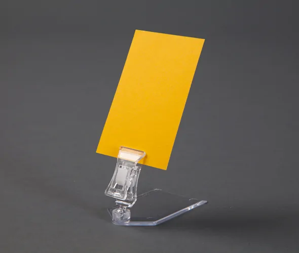 Clear plastic card holder with 50mm collapsible connector. 40mm x 75mm base and 25mm wide card holder. Supplied unassembled
