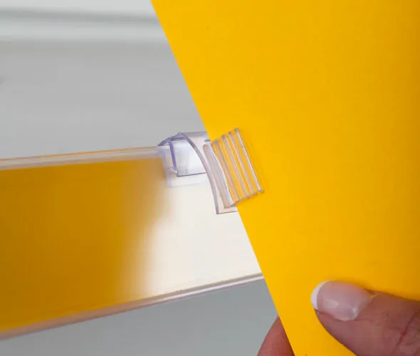 - Easy Installation: The flexible hinge allows for effortless attachment over or under scanner rails, streamlining the process of setting up your signage.