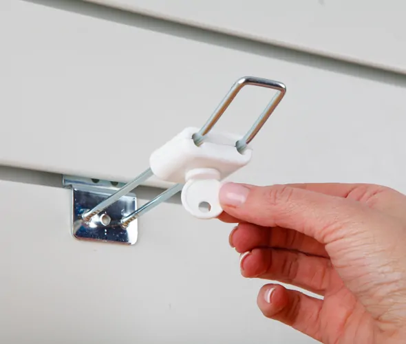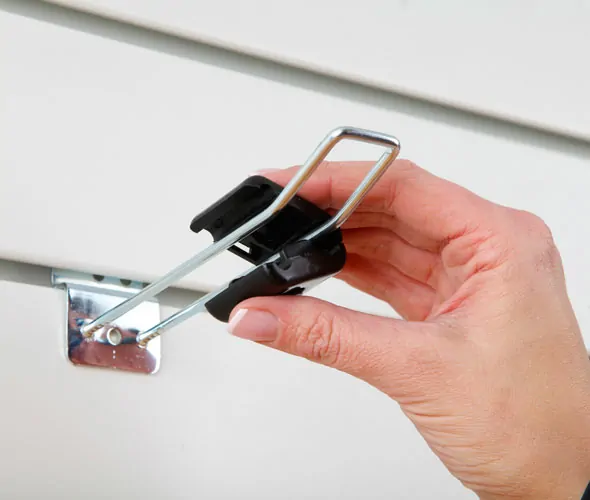 White or black plastic security lock designed to keep your retail stock secure and protect products from theft. Fits most Metal Merchandising Eurohooks, simply open and place the Hook Lock around the metal prongs and lock shut with the supplied key. Please contact us for a sample to check fit