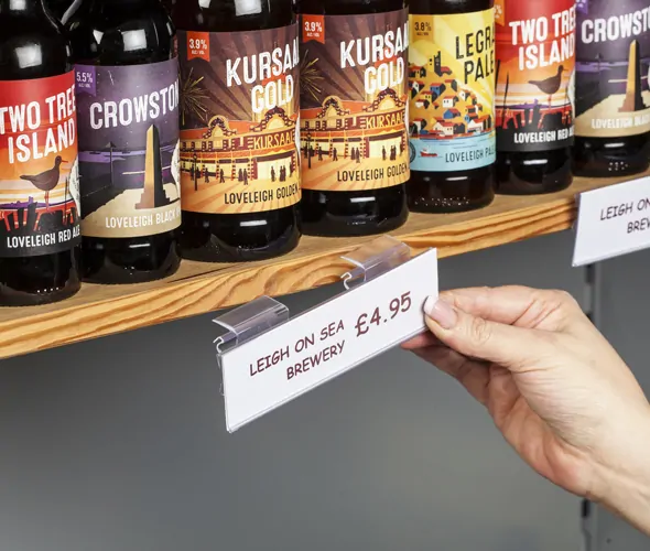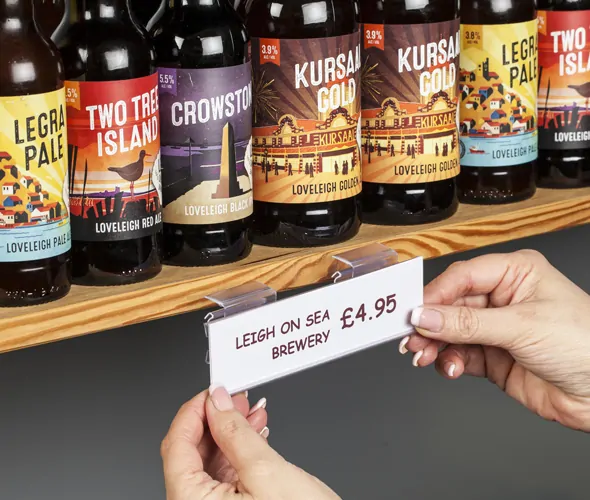 Clear extruded PVC Jaw Clip fits glass, wood or metal shelves 8-10mm thick. 35mm wide. Designed to fit our Universal Label Holder (sold separately)