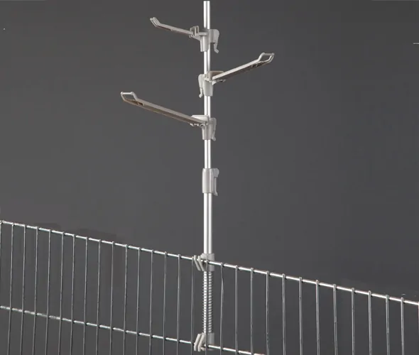 • Merchandising Pole for wire bins, metal wire grids