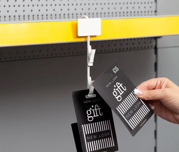 • Hook Over Design: The 'candy cane' hook shape allows for quick and hassle-free installation directly into perforated panels on the retail shelf edge.