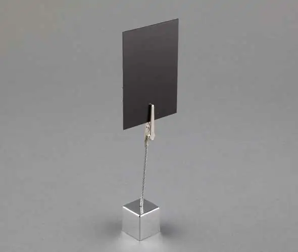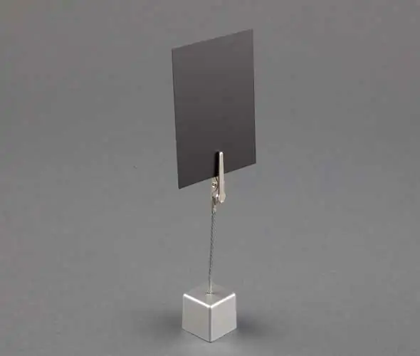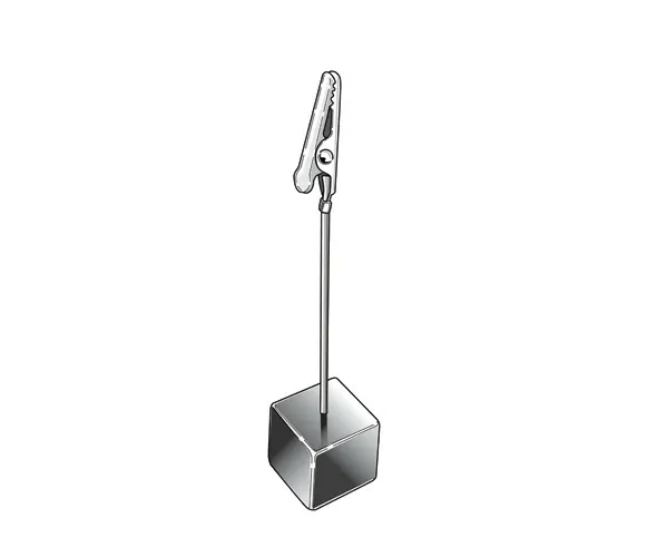 Chrome based card holder with 83mm length wireIntroducing our Mini Card Holder, a sophisticated addition to your display arsenal. This compact holder features a modern chrome base paired with an 83mm length wire, providing an elegant and sturdy solution for showcasing cards, photos, or small signage.