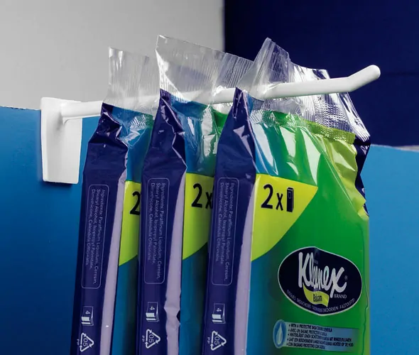 • Low cost option to metal merchandising hooks