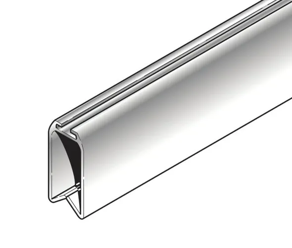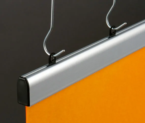 Silver finish extruded PVC poster gripper for gripping paper or card. Simply slide your poster in and suspend from the ceiling using our 560 or 5600 Slide Hangers (sold separately) and Hooks, Rings and Line range (sold separately)- Can be supplied cut to your required length or supplied as a stock length