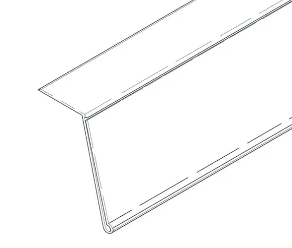 Clear front, white back, angled extruded PVC scanner rail/labelholder for fitting to top of shelves. Colours available subject to minimum quantity. Supplied fitted with self adhesive tape and cut to the required length. 38mm label depth