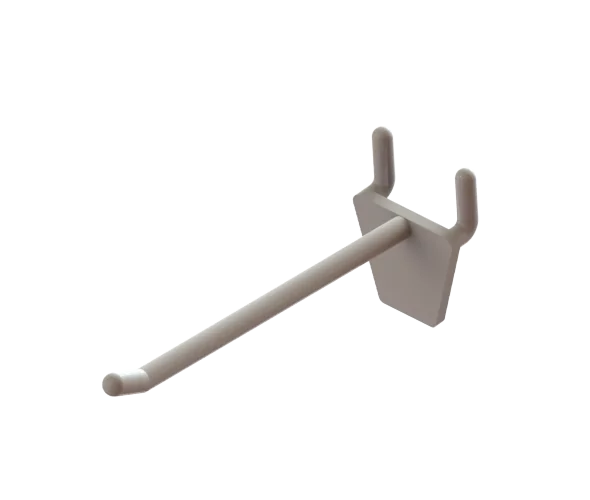 Strong glass fibre reinforced nylon merchandising hook with a 2mm pegmetal offset to prongs, specifically designed to be slotted into 25mm pegmetal panel We can colour match our hook range to suit your brand or promotion using RAL or Pantone colour references
