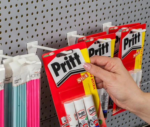 Strong glass fibre reinforced nylon merchandising hooks with a 2mm pegmetal offset to prongs, specifically designed to be slotted into 25mm pegmetal panel- Low cost, high quality product manufactured in the UK by Alplas