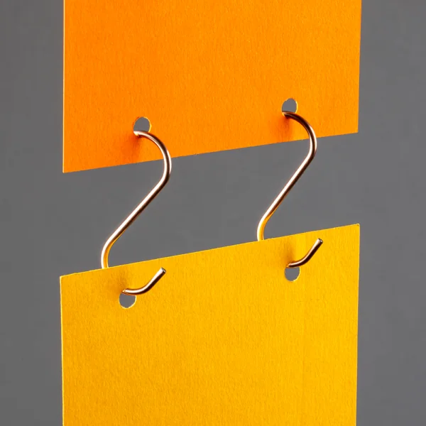 Mild Steel with Copper coating 'S' Hook design to connect hanging signage or POS graphicsEnhance your retail displays effortlessly with our Copper finish 'S' Hook. This hook is tailored to streamline the hanging of signage or POS graphics. Crafted from durable 2mm thick mild steel and adorned with a stunning copper coating, this 'S' Hook combines strength and aesthetics for your display requirements.