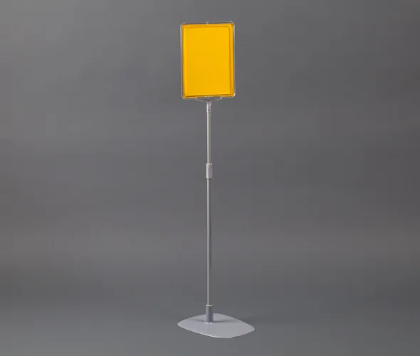 Clear, black or red plastic frame and stand with adjustable plastic tube extends from 500-950mm Light grey recycled PET base (180 x 230mm) with frame and clear 75mm wide t-piece. Clear, black and red available as stock items. Other colours available subject to quantity- PVC Poster Protectors (sold separately)
