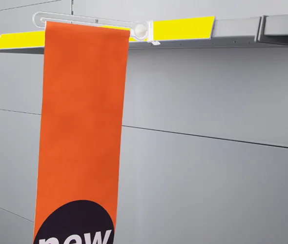 Clear polycarbonate banner hanger designed to clip onto a 39mm scanner rail. Adjustable angle. Takes 180mm wide banner While stocks last