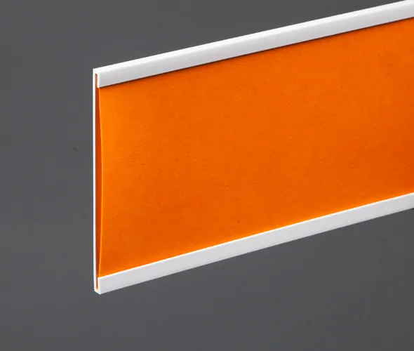 White or black high impact PVC ticket rail. Rails can be fitted with a large variety of clips or adhesive tapes to customer requirements. Colours available subject to minimum quantity. Supplied cut to the required length. 97mm label depth
