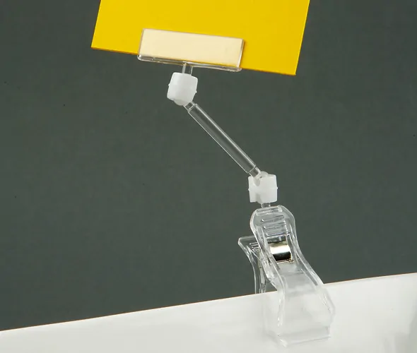 Clear plastic large tube spring clip with 40mm connector and 50mm wide card holder. Bagged in 10's