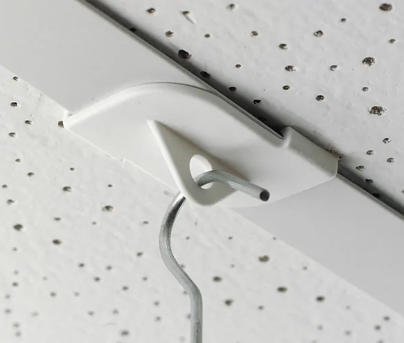 White plastic clip twists onto suspended ceiling bars. Enhance your in-store displays with our Twist On Suspended Ceiling Hanging Clip, meticulously designed to provide an extra secure fit on suspended ceiling bars. Made from durable white acetal plastic, this versatile clip offers a simple yet effective solution for showcasing lightweight Point of Sale (POS) signage. Key Features:- Twist-On Secure Fit: The distinctive feature of this ceiling hanging clip is its ability to securely twist onto suspended ceiling bars. This ensures an extra secure and reliable fit, preventing unwanted movement and offering peace of mind.
